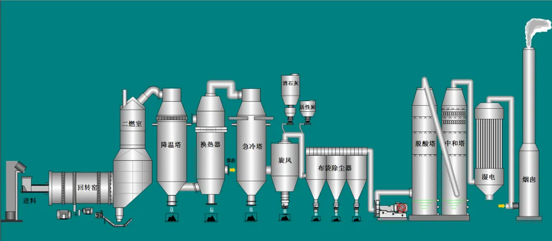 智慧焚燒: 焚燒車間采用“回轉(zhuǎn)窯焚燒爐+煙氣處理系統(tǒng)”先進工藝,年處置能力3萬噸。物料經(jīng)回轉(zhuǎn)窯充分焚燒,產(chǎn)生的煙氣歷經(jīng)急冷、除塵、脫酸中和等多重凈化關(guān)卡,確保達標排放。